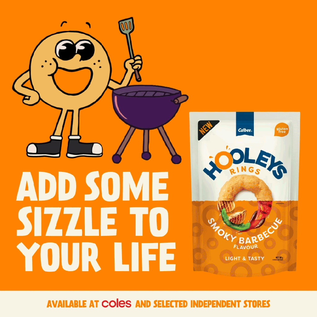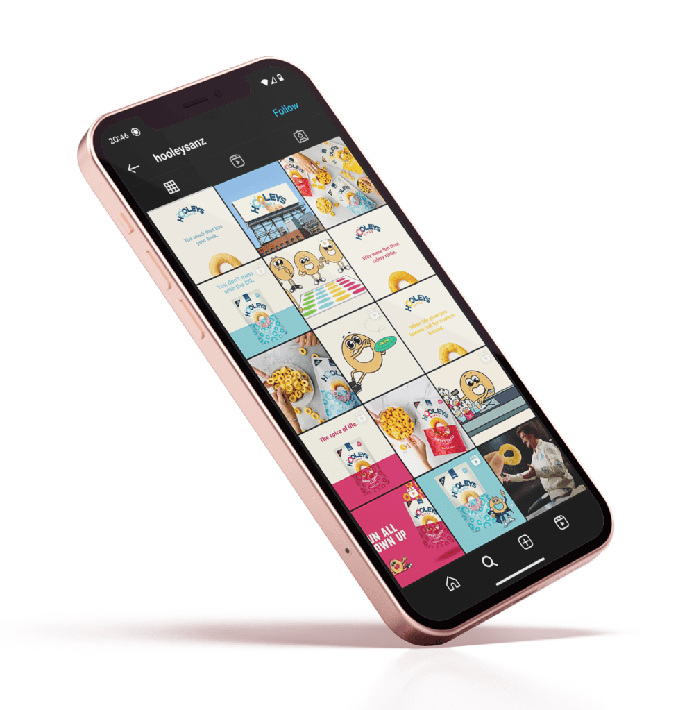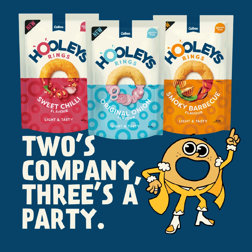 Calbee Australia introduced a new brand to its range during my time working with them, hitting supermarkets in 2023. Hooleys are an airy, crunchy treat that the client decided to treat with a tone of “wholesome fun” and had a cartoon mascot created to reflect that.
