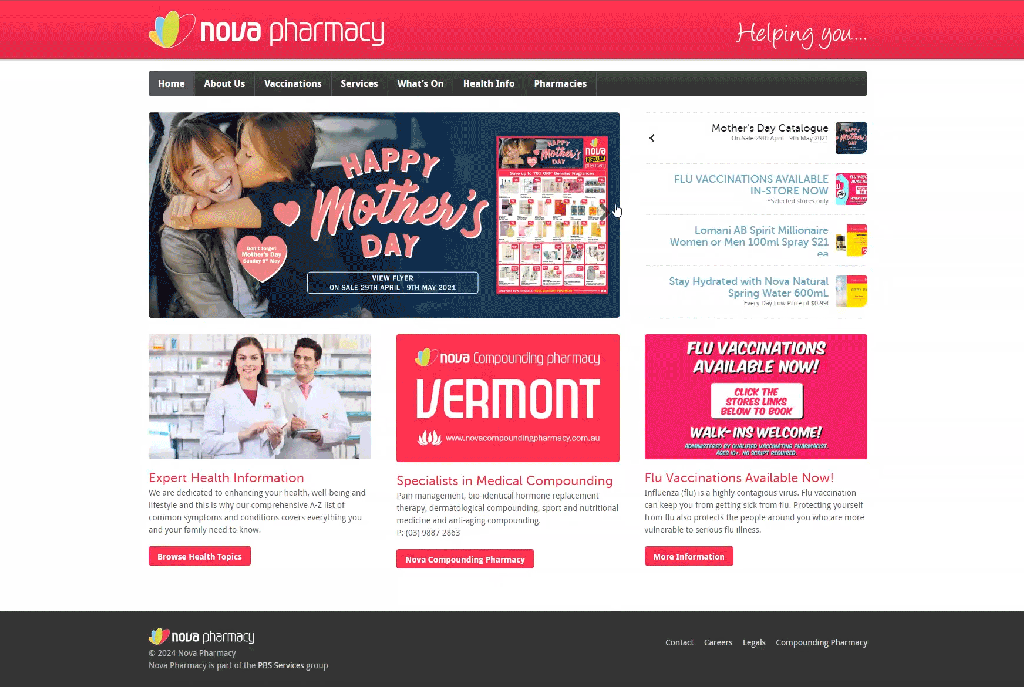 Every month I would also whip up some digital banners for the Nova Pharmacy website. Some of these were templated, like their Fragrance of the Month which had matching POS material, while others were created from scratch.
