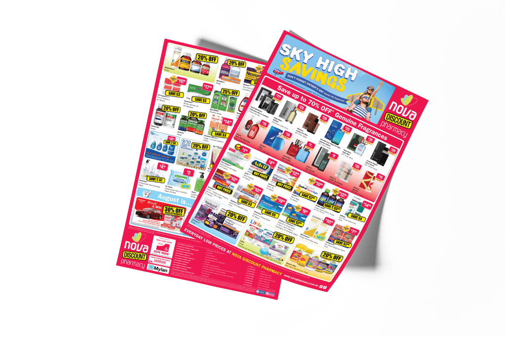 As part of an agency hired by Nova Pharmacy, I was able to conceptualize and construct their regular catalogues as well as create online banners and POS materials for them.
