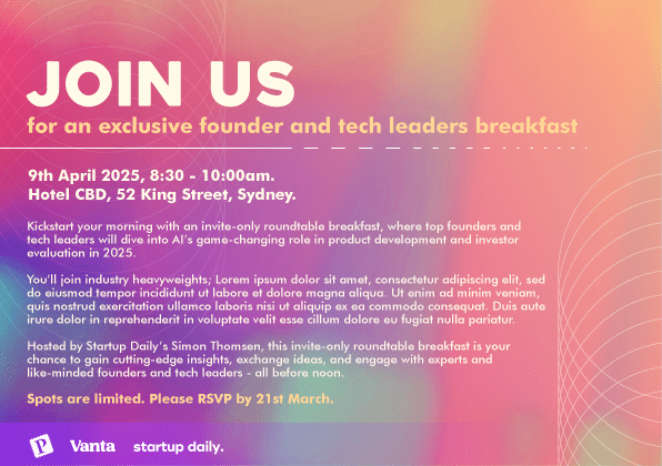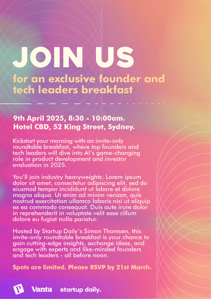 As a platform for tech startup news and insights, Startup Daily is responsible for a number of tech industry events in Australia and New Zealand. Using a colour palette to invoke ideas of “cyber-futurism”, I conceptualised some invites for a tech founder and leaders breakfast event.